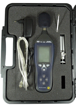 Klasse II Schallpegelmeter mit Messwertspeicher, USB-Schnittstelle, USB-Kabel, Analogausgang, Übertragungs- und Auswerte-Software, Steckbuchse für Signalausgang |